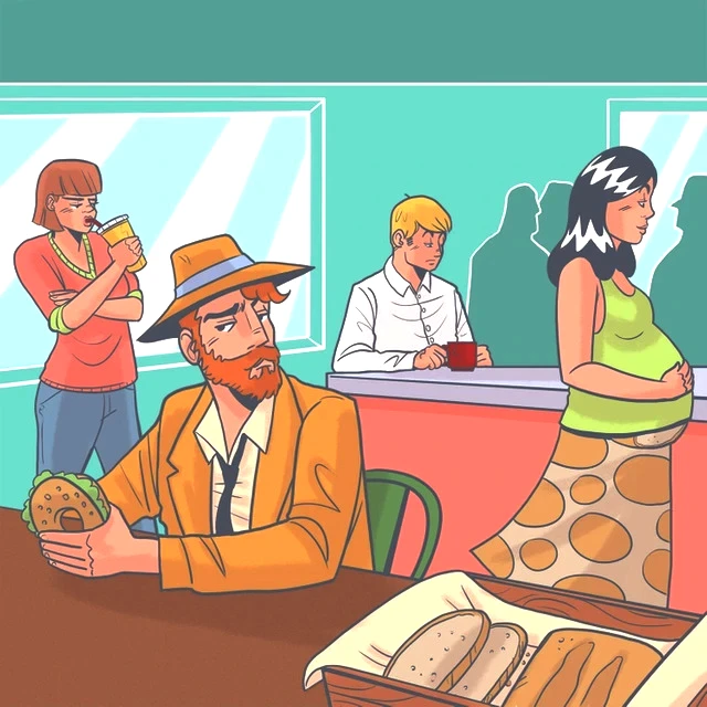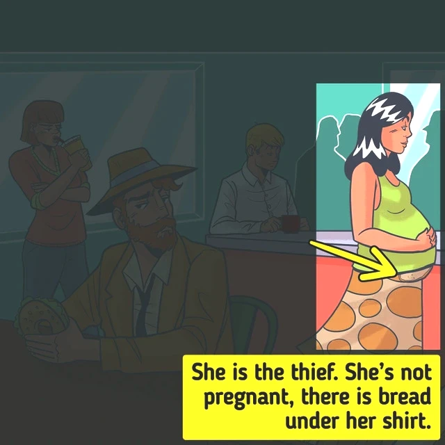 Cevap: En sağ tarafta duran kadın aslında hamile değil, karnında ekmek taşıyor. Dolayısıyla hırsız odur.